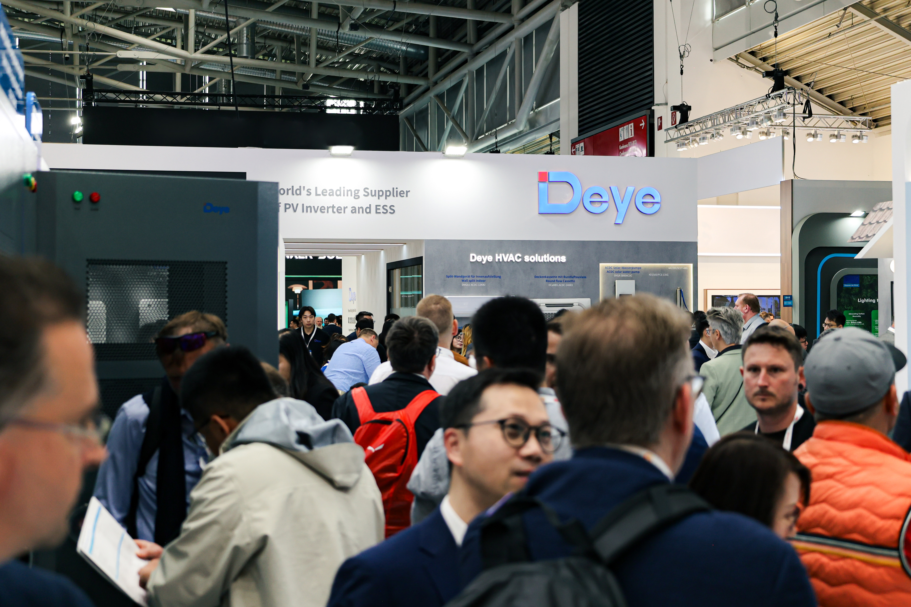 Deye presentado impresionantemente En el Smarter E Europe 2025, Europa " S Exposición más grande para sistemas de almacenamiento solar, baterías y de energía (ESS) celebrada en Munich, Alemania, el 7 de mayo. En el evento, Deye presentó una variedad de soluciones solares solares y ESS avanzadas, energía innovadora y carga gestión Soluciones, que incluyen un sistema modular de almacenamiento de energía de C&I de C&I de 100kW-2.5MW, Micro Hybrid ESS para balcones y escenarios de baja potencia exigente, sistema inalámbrico de gestión de energía inalámbrico con sede en Lora y 420kW DC Solución integrada de carga fotovoltaica .